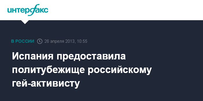 Он отметил, что решение о предоставлении политического убежища ЛГБТ-активисту испанские власти приняли "беспрецедентно быстро": "Активист прошел лишь одно интервью в Барселоне и не вызывался, как в таких случаях бывает, на второе интервью в Мадрид. Не понадобилось и обращение в судебные органы".