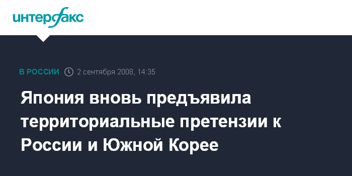Сеул. 2 сентября. INTERFAX.RU - В очередном издании японского ежегодника "Белая книга обороны", увидевшем свет вчера, южные Курильские острова и острова Такэсима обозначены как часть территории Японии, сообщает южнокорейская англоязычная газета Korea Times.