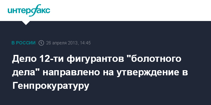 Москва. 26 апреля. INTERFAX.RU - Следователи завершили расследование уголовного дела о массовых беспорядках на Болотной площади в Москве в мае прошлого года в отношении 12 фигурантов, сообщили в СКР.