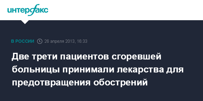 Две трети пациентов сгоревшей больницы принимали лекарства для предотвращения обострений