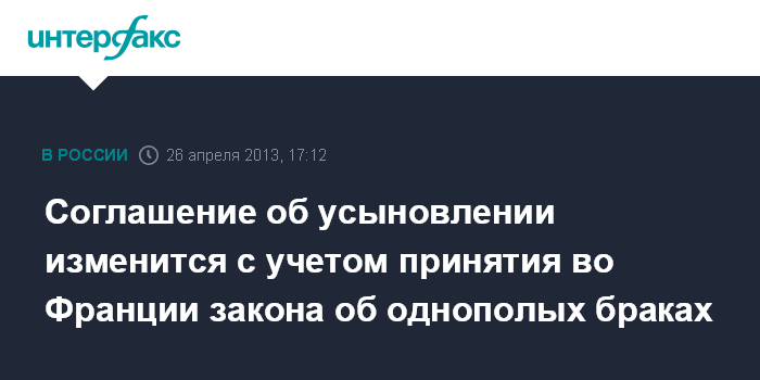 Соглашение об усыновлении изменится с учетом принятия во Франции закона об однополых браках
