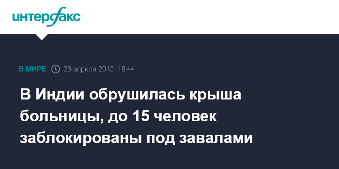 Дели. 26 апреля. INTERFAX.RU - Спасатели ведут поиск группы людей, оказавшихся под завалами в результате обрушения крыши больницы в индийском городе Бхопале, сообщают в пятницу местные медики.