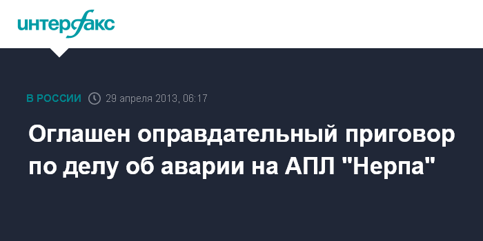 Владивосток. 29 апреля. ИНТЕРФАКС-ДАЛЬНИЙ ВОСТОК - Тихоокеанский флотский военный суд во Владивостоке вынес в понедельник оправдательный приговор по делу об аварии на АПЛ "Нерпа", сообщает из зала суда корреспондент агентства "Интерфакс - Дальний Восток".