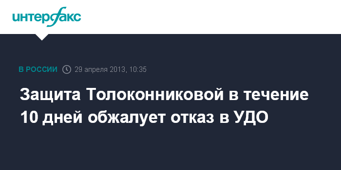 Защита Толоконниковой в течение 10 дней обжалует отказ в УДО