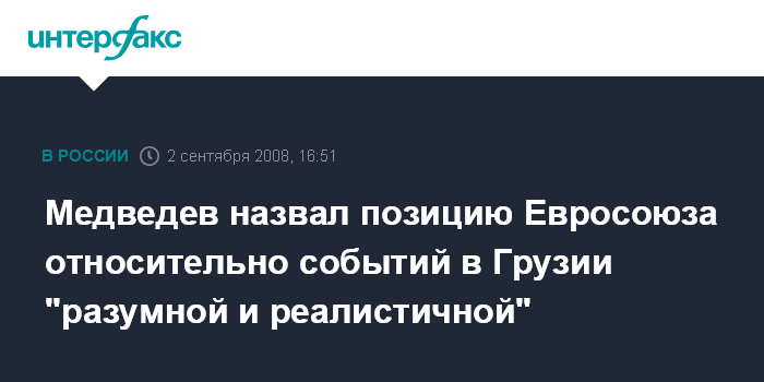 Медведев назвал позицию Евросоюза относительно событий в Грузии "разумной и реалистичной"