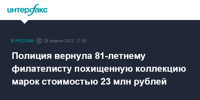 Санкт-Петербург. 29 апреля. INTERFAX.RU - Сотрудники полиции задержали подозреваемого в краже у жителя Выборга коллекции марок стоимостью 23 млн рублей, сообщает пресс-служба ГУ МВД по северной столице.