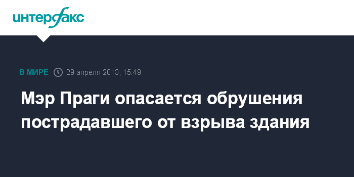 Прага. 29 апреля. INTERFAX.RU - Здание в столице Чехии, в котором в понедельник произошел сильный взрыв, может полностью обрушиться, заявил мэр Праги Богуслав Свобода.