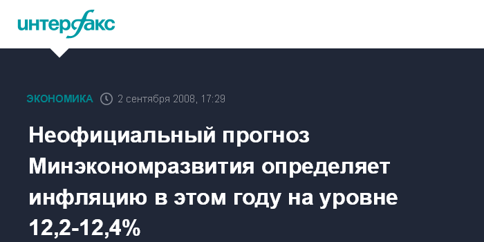 Неофициальный прогноз Минэкономразвития определяет инфляцию в этом году на уровне 12,2-12,4%