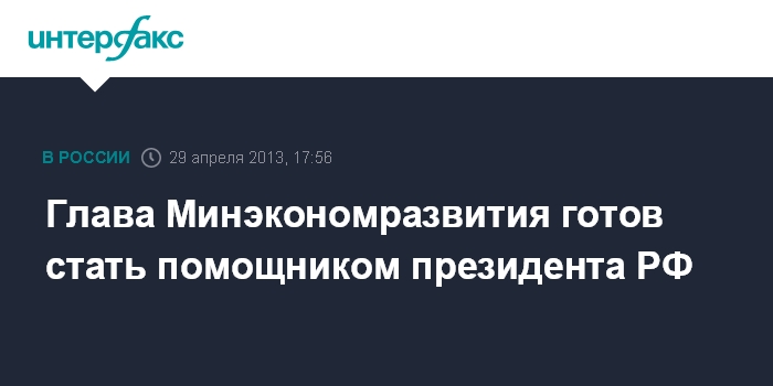 "У меня предложения о переходе на другую работу поступают с частотой примерно один раз в месяц. Что касается вашего вопроса, то я могу сказать одно - если такое будет решение президента и председателя правительства, я его, безусловно, исполню", - сказал он на брифинге по итогам заседания коллегии Минэкономразвития, отвечая на вопрос журналистов, было ли ему предложение перейти на работу на должность помощника президента РФ, о чем писали некоторые СМИ.