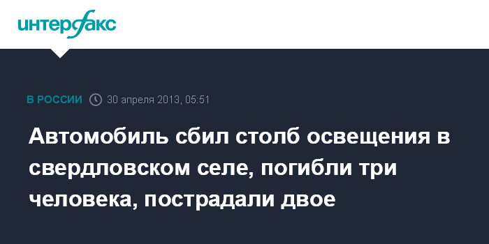 Автомобиль сбил столб освещения в свердловском селе, погибли три человека, пострадали двое