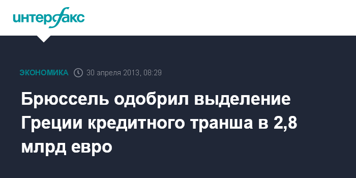 Брюссель одобрил выделение Греции кредитного транша в 2,8 млрд евро