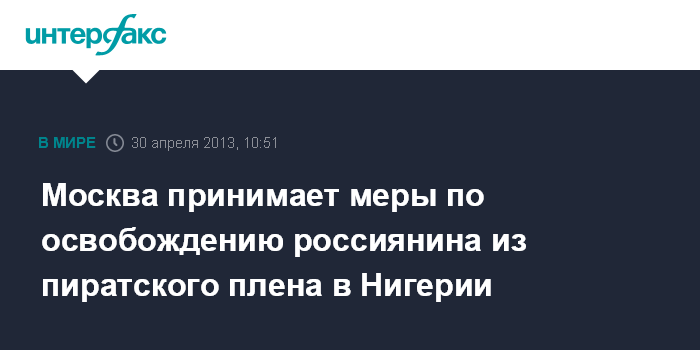Москва принимает меры по освобождению россиянина из пиратского плена в Нигерии