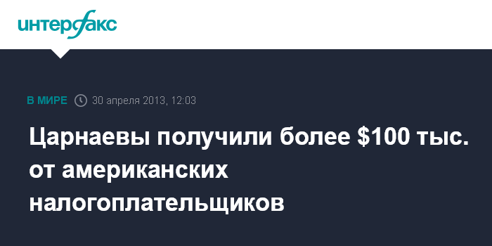 Царнаевы получили более $100 тыс. от американских налогоплательщиков