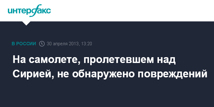 На самолете, пролетевшем над Сирией, не обнаружено повреждений