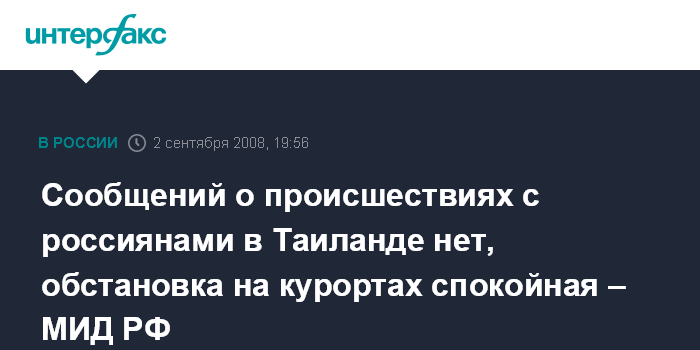 Сообщений о происшествиях с россиянами в Таиланде нет, обстановка на курортах спокойная – МИД РФ