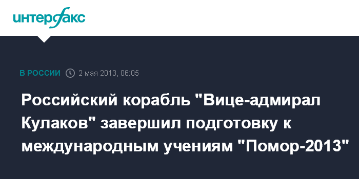 Российский корабль "Вице-адмирал Кулаков" завершил подготовку к международным учениям "Помор-2013"