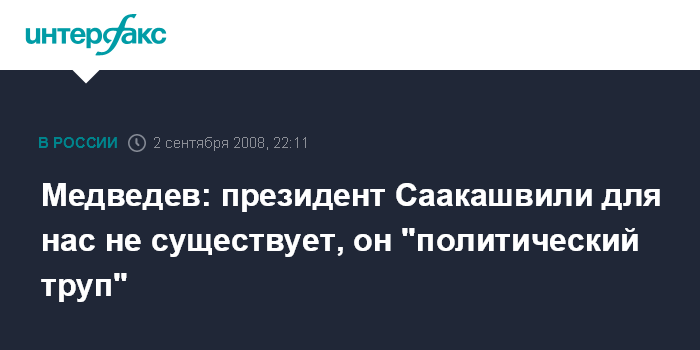 Медведев: президент Саакашвили для нас не существует, он "политический труп"