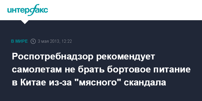 Роспотребнадзор рекомендует самолетам не брать бортовое питание в Китае из-за "мясного" скандала