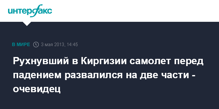Рухнувший в Киргизии самолет перед падением развалился на две части - очевидец