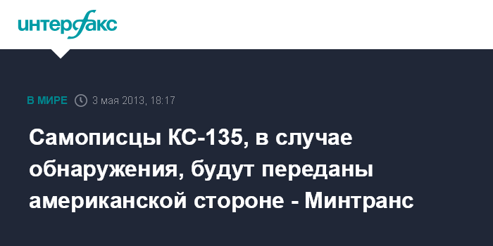 Самописцы КС-135, в случае обнаружения, будут переданы американской стороне - Минтранс