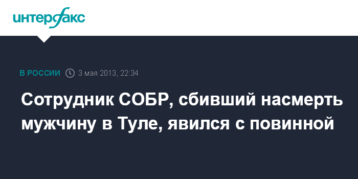 "В УМВД России по Тульской области поступила явка с повинной 38-летнего сотрудника СОБР по факту совершения им ДТП со смертельным исходом", - говорится в сообщении на сайте областной полиции.