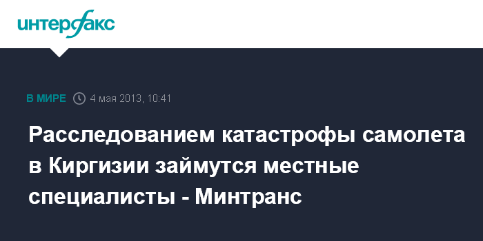 Расследованием катастрофы самолета в Киргизии займутся местные специалисты - Минтранс