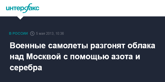 Военные самолеты разгонят облака над Москвой с помощью азота и серебра