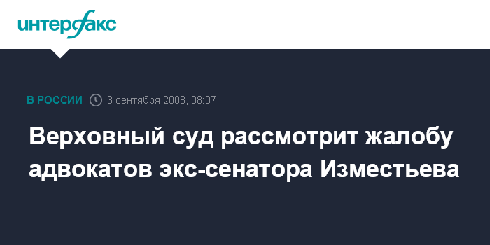 Верховный суд рассмотрит жалобу адвокатов экс-сенатора Изместьева