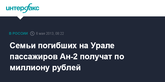 Семьи погибших на Урале пассажиров Ан-2 получат по миллиону рублей