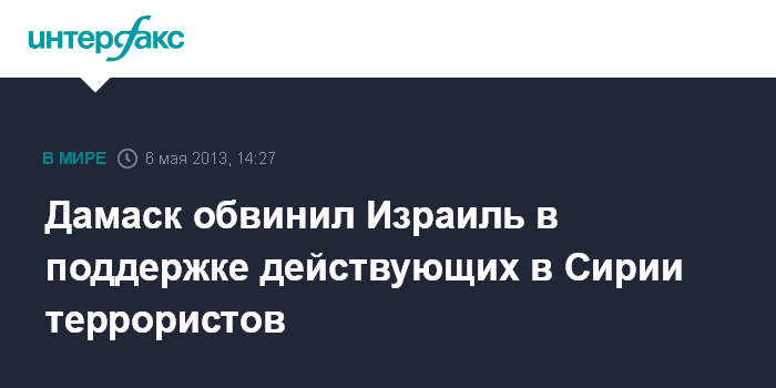 "Этот удар совпал по времени с попытками террористических группировок прорваться в Дамаск. То есть, эта атака имела целью не то, о чем говорил Израиль, а именно, уничтожение оружия, предназначенного "Хезболле", а имела целью оказание непосредственной помощи террористам захватить Дамаск", - заявили "Интерфаксу" в посольстве Сирии в Москве.
