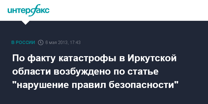 По факту катастрофы в Иркутской области возбуждено по статье "нарушение правил безопасности"