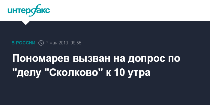 На просьбу "Интерфакса" подтвердить информацию о вызове Пономарева на допрос, в СК отметили: "Действительно, Пономарев во вторник к 10 утра вызван на допрос по делу о растрате в "Сколково" в качестве свидетеля".