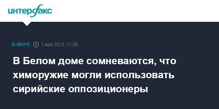Вашингтон. 7 мая. INTERFAX.RU - В администрации президента США Барака Обамы сомневаются в достоверности сообщений, указывающих на возможное применение химоружия бойцами сирийской оппозиции, заявил в понедельник представитель Белого дома Джей Карни.