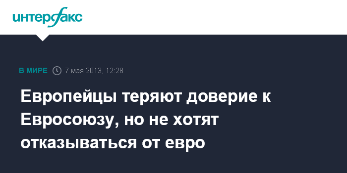 Берлин. 7 мая. INTERFAX.RU - Доверие к Европейскому союзу среди жителей входящих в него государств упало на очень низкий уровень, при этом больше всего евроскептиков - в южных странах континента, охваченных тяжелым экономическим кризисом и вынужденных проводить широкомасштабную реструктуризацию всей социально-экономической системы, сообщает Deutsche Welle.