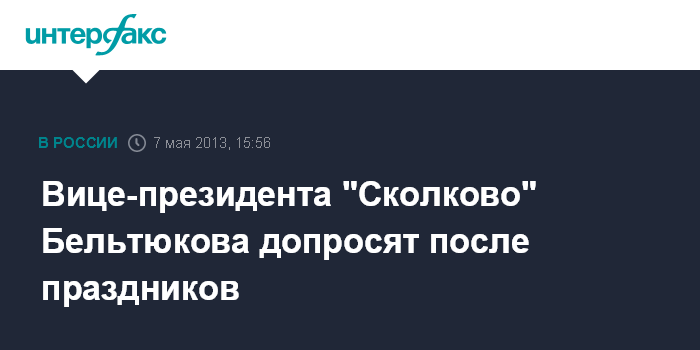 Вице-президента "Сколково" Бельтюкова допросят после праздников