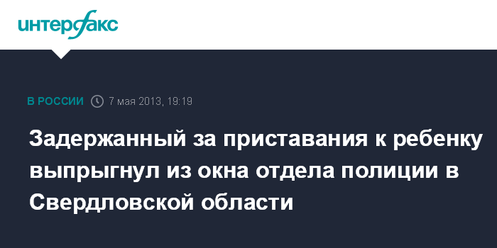 Екатеринбург. 7 мая. INTERFAX.RU - В городе Нижнем Тагиле (Свердловская область) во вторник попытался сбежать из отдела полиции мужчина, доставленный туда за сексуальные домогательства в отношении 9-летней девочки, сообщил агентству "Интерфакс-Урал" руководитель пресс-службы ГУ МВД РФ по Свердловской области Валерий Горелых.