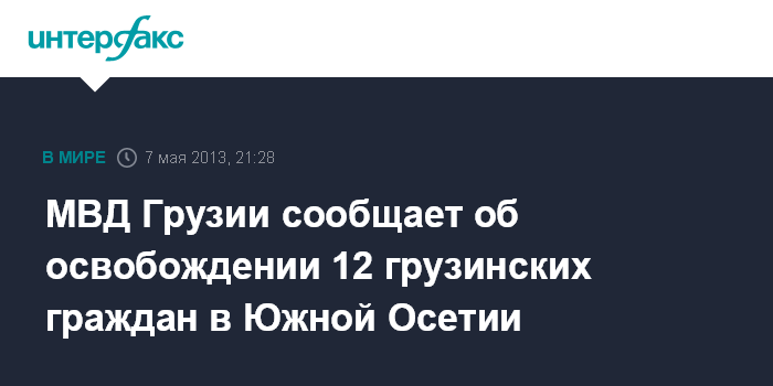 Тбилиси. 7 мая. INTERFAX.RU - МВД Грузии во вторник сообщило об освобождении югоосетинской стороной 12 ранее задержанных грузинских граждан.