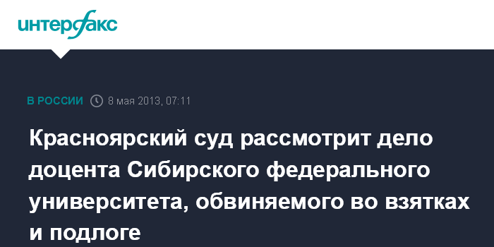 Красноярский суд рассмотрит дело доцента Сибирского федерального университета, обвиняемого во взятках и подлоге
