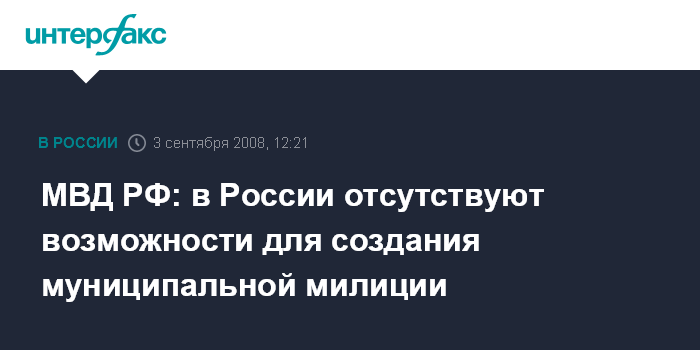 Москва. 3 сентября. INTERFAX.RU - В России в настоящее время нет условий для создания муниципальной милиции, считает начальник правового департамента МВД России Валерий Черников. "Я полагаю, что в современных политических, экономических и правовых условиях для создания полноценной муниципальной милиции отсутствуют необходимые возможности", - заявил он журналистам.
