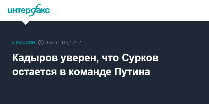 Москва. 8 мая. INTERFAX.RU - Глава Чеченской республики Рамзан Кадыров считает, что ушедший в отставку с поста вице-премьера России Владислав Сурков по-прежнему остается в команде президента.
