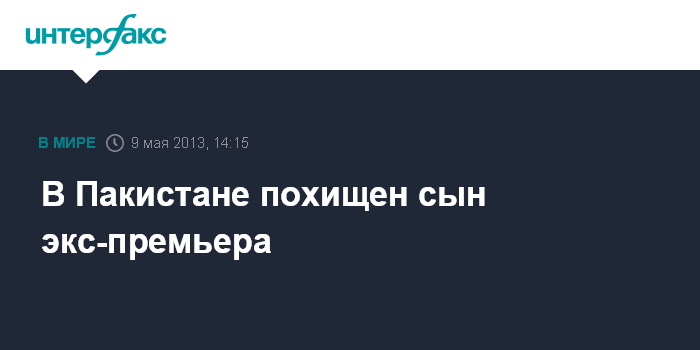 Исламабад. 9 мая. INTERFAX.RU - Бывший премьер Пакистана Юсуф Реза Гилани сообщил в четверг о похищении его младшего сына, передает пакистанский телеканал Geo. Политик обвинил в этом своих политических оппонентов.