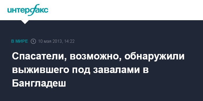 Дели. 10 мая. INTERFAX.RU - Под обломками обрушившегося здания в Бангладеш, вероятно, обнаружили выжившего, сообщает в пятницу агентство AP.