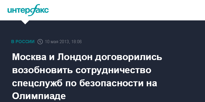 Москва и Лондон договорились возобновить сотрудничество спецслужб по безопасности на Олимпиаде