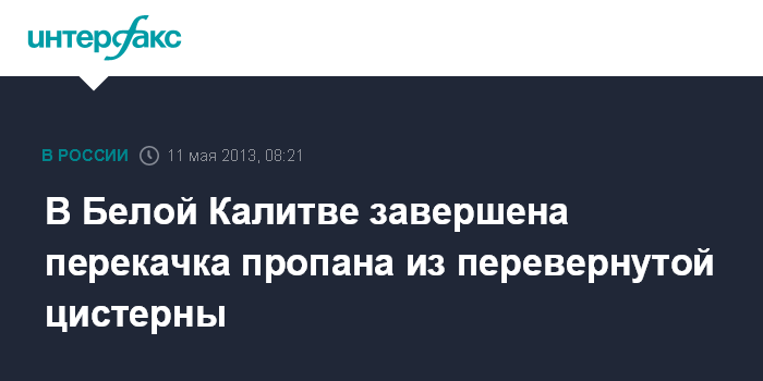 Ростов-на-Дону. 11 мая. ИНТЕРФАКС-ЮГ - Откачка пропана из одной из цистерн, сошедших с рельсов на железнодорожной станции Белая Калитва в Ростовской области, завершена, сообщила в субботу агентству "Интерфакс-Юг" представитель пресс-службы ГУ МЧС РФ по Ростовской области Марина Чернявская.