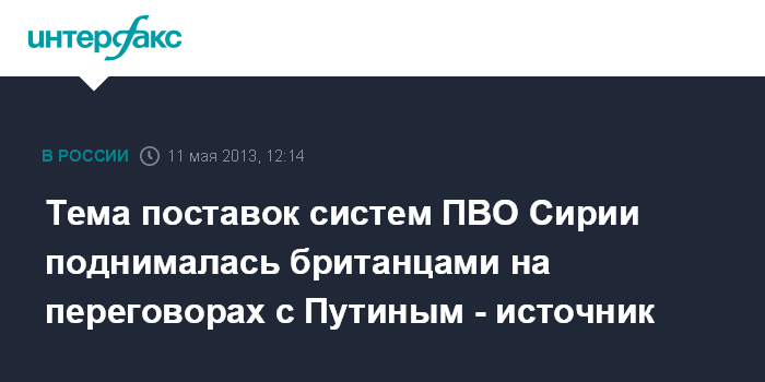 Тема поставок систем ПВО Сирии поднималась британцами на переговорах с Путиным - источник