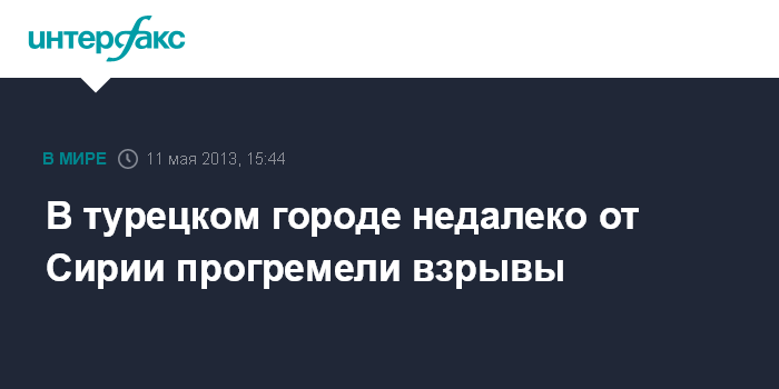 Бейрут. 11 мая. INTERFAX.RU - Два взрыва произошли в субботу в городе Рейханлы в турецкой провинции Хатай, неподалеку от границы с Сирией, сообщает в субботу ливанская газета "Дейли стар" со ссылкой на местного чиновника.