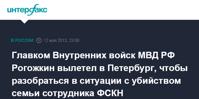 Главком Внутренних войск МВД РФ Рогожкин вылетел в Петербург, чтобы разобраться в ситуации с убийством семьи сотрудника ФСКН