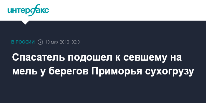 Владивосток. 13 мая. ИНТЕРФАКС-ДАЛЬНИЙ ВОСТОК - Спасательное судно "Лазурит" подошло к сухогрузу "Уссури", севшему в субботу на мель у берегов Приморья.