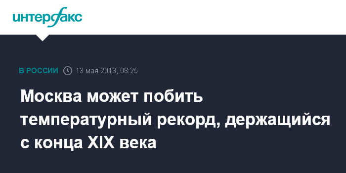 "Возможно, будет превзойден температурный рекорд для 13 мая, который был установлен в далеком 1883 году и составил 28,6 градусов", - сказал собеседник агентства.