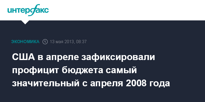 США в апреле зафиксировали профицит бюджета самый значительный с апреля 2008 года